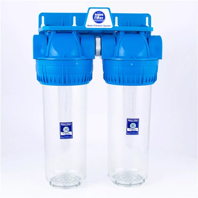 2 lépcsős, azaz 2 szűrőházból álló rendszer. A szűrőházak 3 részből állnak: kék szűrőház fej, átlátszó szűrőház pohár és kék hollander. Légtelenítő szeleppel, dupla "O" gyűrűvel, 10" méretű szűrőbetétek részére, 1/2"  réz betétes belső menetes csatlakozással.