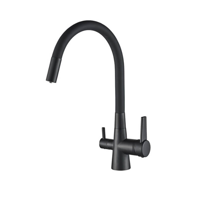 Konyhai csaptelep víztisztítóhoz 3-utas Modern dizájn flexibilis kifolyócsővel - fekete