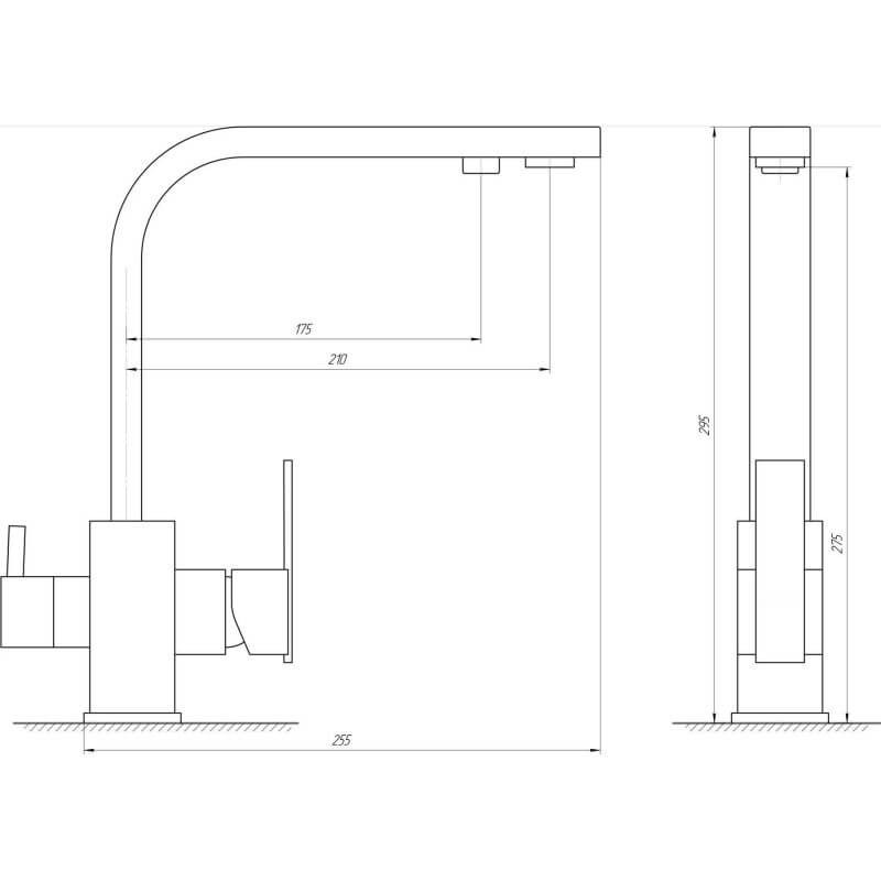 Konyhai csaptelep víztisztítóhoz 3-utas Modern dizájn - szögletes - matt fekete